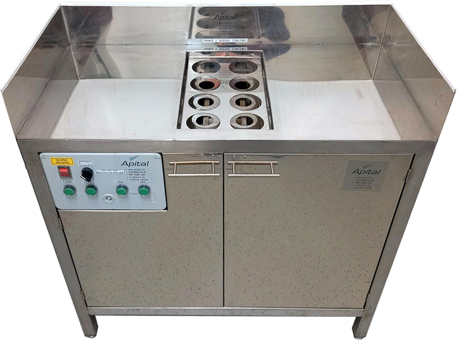 Capacitatea echipamentului este de până la 300 de borcane pe oră, asigurând continuitatea și o calitate uniformă a pregătirii ambalajului. Datorită dimensiunilor sale compacte, este potrivit pentru instalare în linii de producție mici și medii.